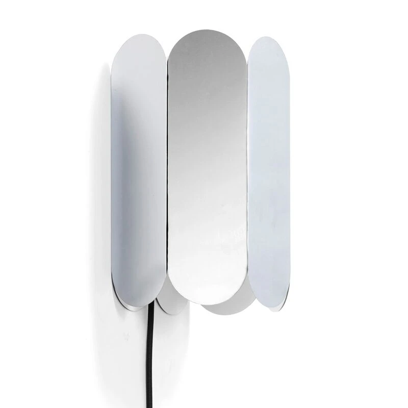 Le luminaire Arcs Wall Switch de HAY attire le regard et crée un délicat jeu d’ombres et de lumière dans la pièce. Ce luminaire original et graphique, fabriqué en tôle d’acier pliée, exhibe une surface miroir brillante.