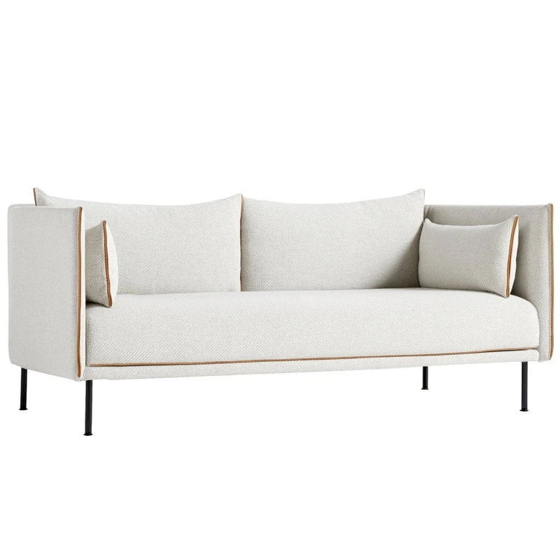 Le canapé Silhouette de HAY présente une silhouette simple et épurée adoucie par la courbe douce de son dossier. Silhouette repose sur des pieds fins en acier ou en chêne et il est garni d’un tissu de qualité supérieure. Les détails du passepoil en cuir ajoutent une touche graphique à la garniture. Grâce à sa structure à la fois légère et de grande capacité, Silhouette trouvera sa place aussi bien dans les salons domestiques que dans les salles d’attentes publiques. Son style frais et minimaliste résistera à l’épreuve du temps. Conçue par GamFratesi, la gamme Silhouette est disponible en plusieurs tailles et avec différentes options pour la garniture et les pieds.
