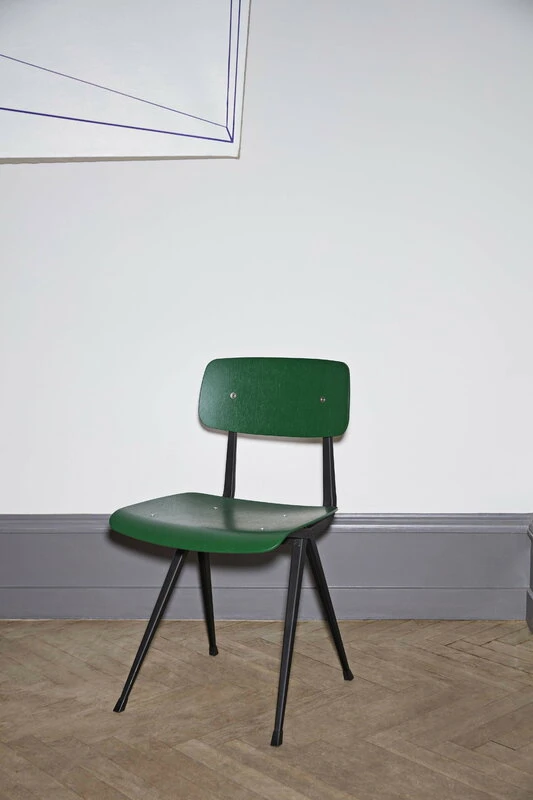 La chaise Result, conçue par Friso Kramer et Wim Rietveld pour Ahrend dans les années 1950, a été relancée par HAY en collaboration avec Ahrend. Result est la combinaison simpliste d’une structure épurée en acier et d’une assise et d’un dossier en contreplaqué incurvés. Elle était considéré dans les années 50 comme un chef-d’œuvre de l’utilisation innovante de la tôle d’acier et elle a conservé son apparence fraîche jusqu’à aujourd’hui. Grâce à son design léger et fonctionnaliste, Result était une chaise populaire dans les écoles scandinaves et elle a été largement utilisée dans des contextes publics et privés. Framer et Rietveld ont créé la chaise Result comme une paire pour la table Pyramid, qui s’accorde parfaitement avec cette chaise. Result est disponible dans plusieurs combinaisons différentes de couleurs de base et de finitions de bois.