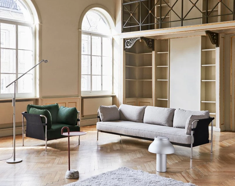 La collection Can de HAY est née lorsque Ronan et Erwan Bouroullec se sont mis en tête de redonner vie au concept du canapé. Ils voulaient créer un meuble pratique, élégant et confortable, mais aussi relaxant et sobre, un canapé qui convient à tout le monde. Les canapés et fauteuils Can sont emballés et livrés à plat et sont assemblés à domicile, ce qui facilite le transport et la manutention. Le nom Can, du verbe « pouvoir » en anglais, rassure toute personne ayant des doutes sur le montage du meuble. Il suffit de fixer les pieds métalliques et fins au cadre, de poser la toile à sa place et de terminer en ajoutant les coussins attrayants et moelleux.