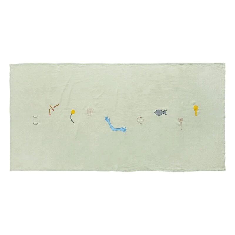 La nappe Sobremesa de HAY a été conçue par la chef et artiste égyptienne Laila Gohar pour transformer la décoration de table et les repas en une véritable aventure. Ornée de broderies et de motifs cousus excentriques, cette nappe en lin mélangé est à la fois amusante et fonctionnelle et peut être utilisée aussi bien pour une décoration de table décontractée que festive.