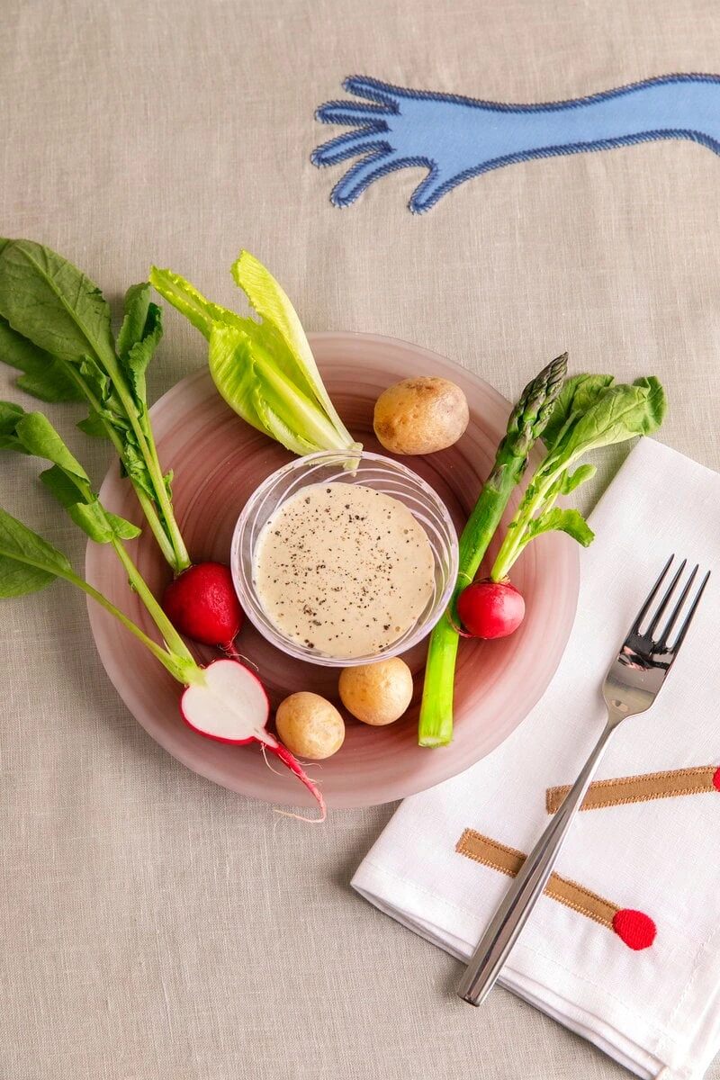 La serviette de table Sobremesa de HAY est une pièce joyeuse conçue par la chef et artiste égyptienne Laila Gohar pour transformer la décoration de table et les repas en une véritable aventure. Ornées de broderies et de motifs cousus excentriques, ces serviettes fabriquées en lin mélangé sont à la fois amusantes et fonctionnelles et peuvent être utilisées aussi bien pour une décoration de table décontractée que festive.