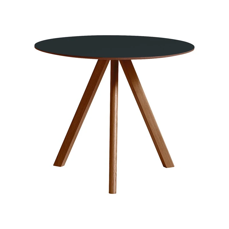 La table Copenhague CPH20 de HAY fait partie de la collection de meubles Copenhague conçue par Ronan et Erwan Bouroullec. La table est fabriquée en noyer laqué et son plateau est en linoléum velouté. Offrant un toucher agréable, ce matériau poreux est susceptible de se patiner avec le temps.